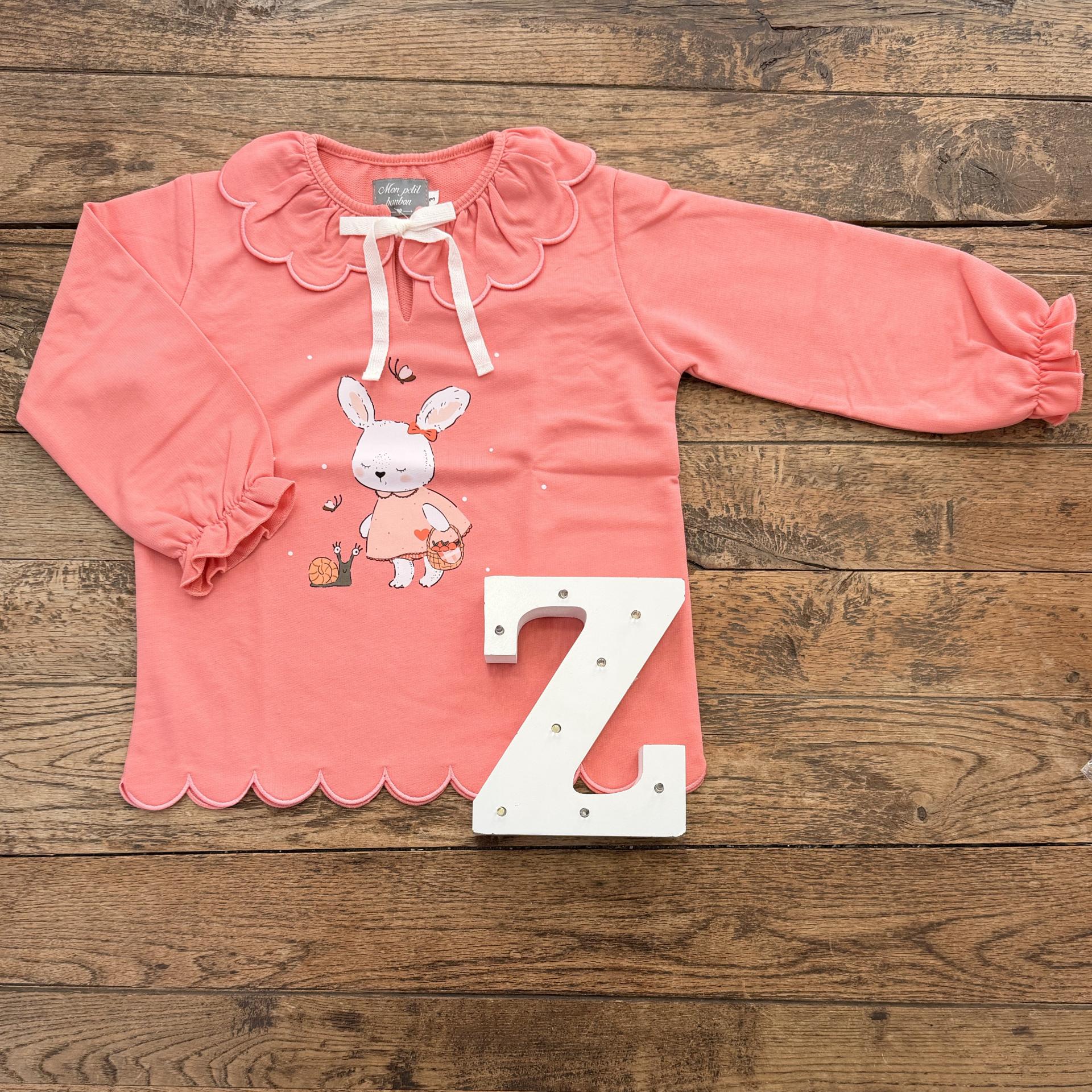 Sudadera melocotón ondas. Conejito