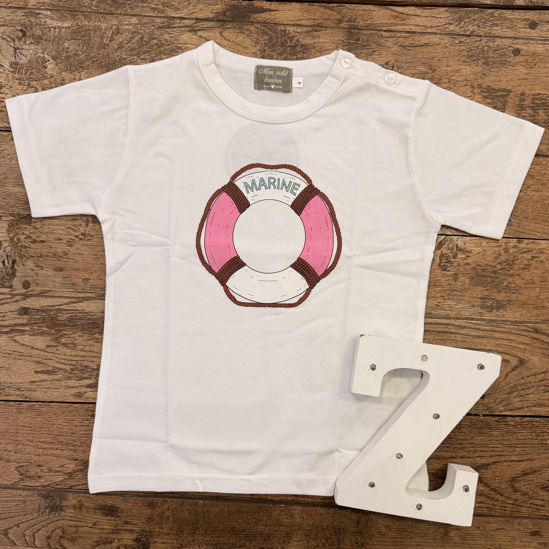 Camiseta niño, blanca, flotador marinero.