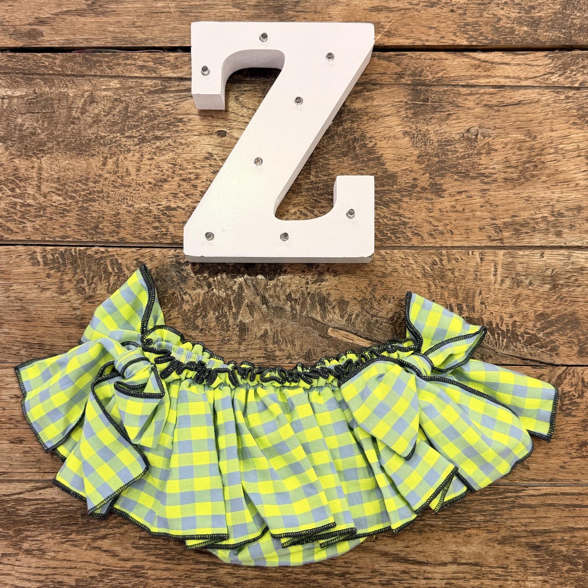 Braguita volantes vichy, verde flúor. Lazos
