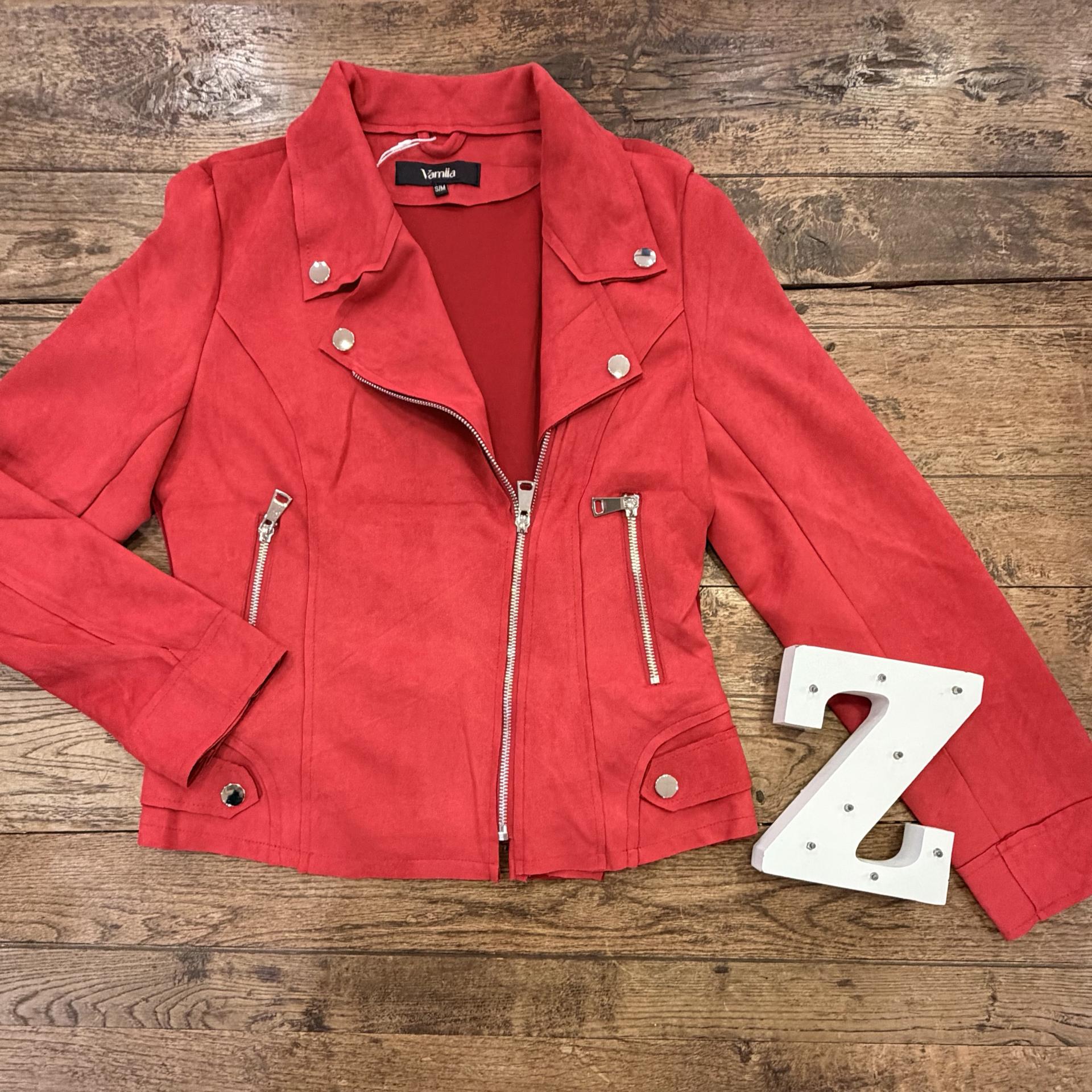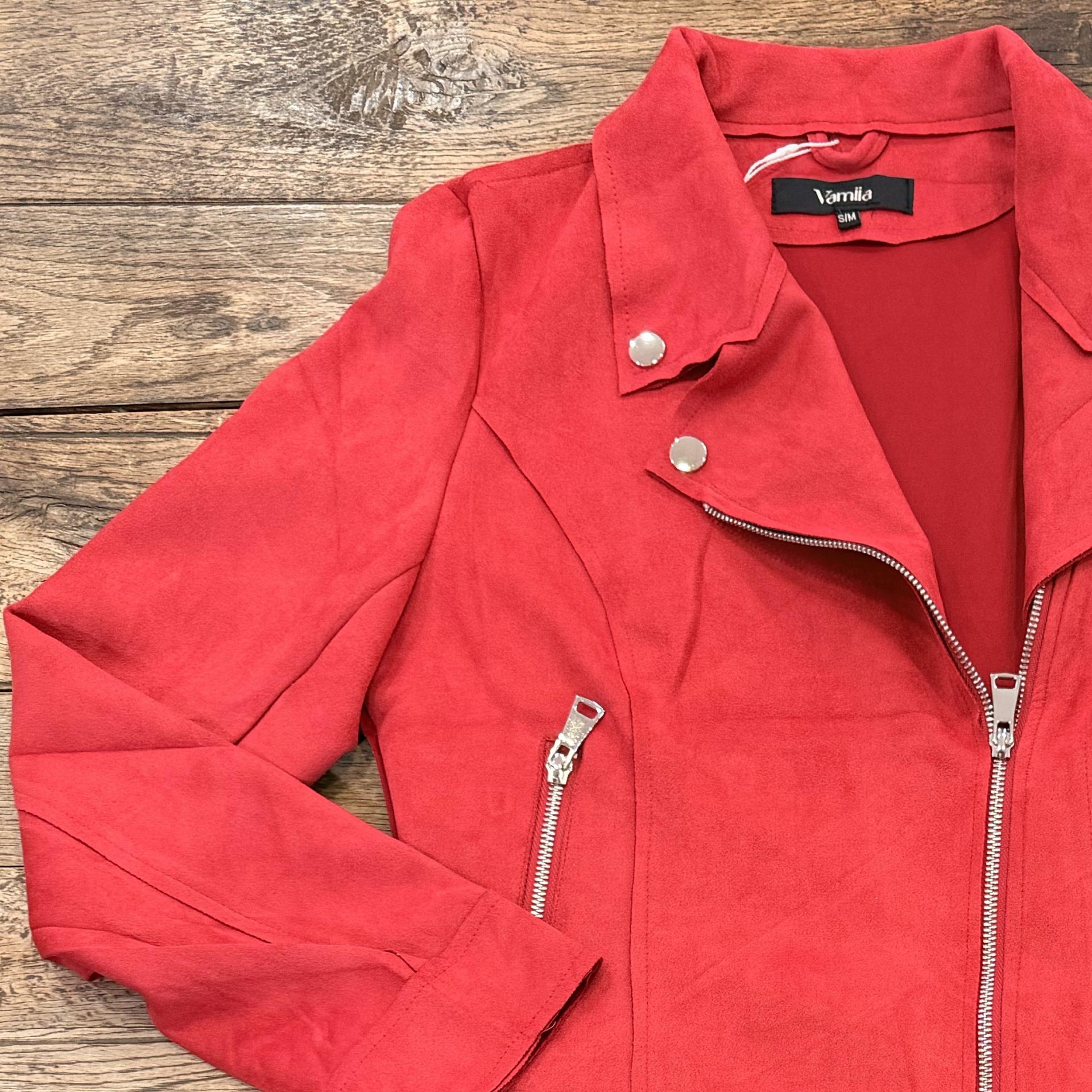 Cazadora roj cremalleras, antelina. Da poca talla.
