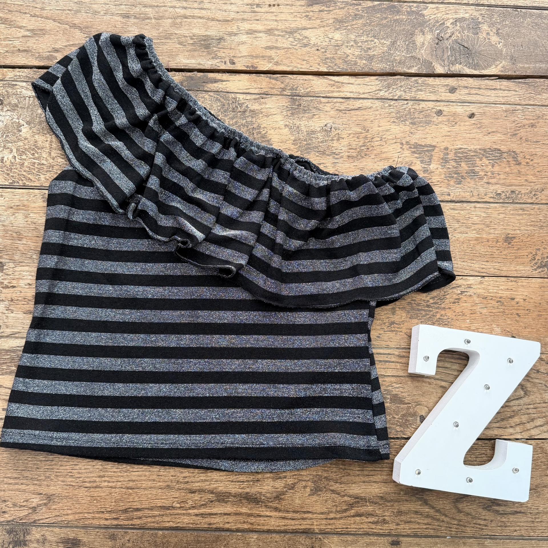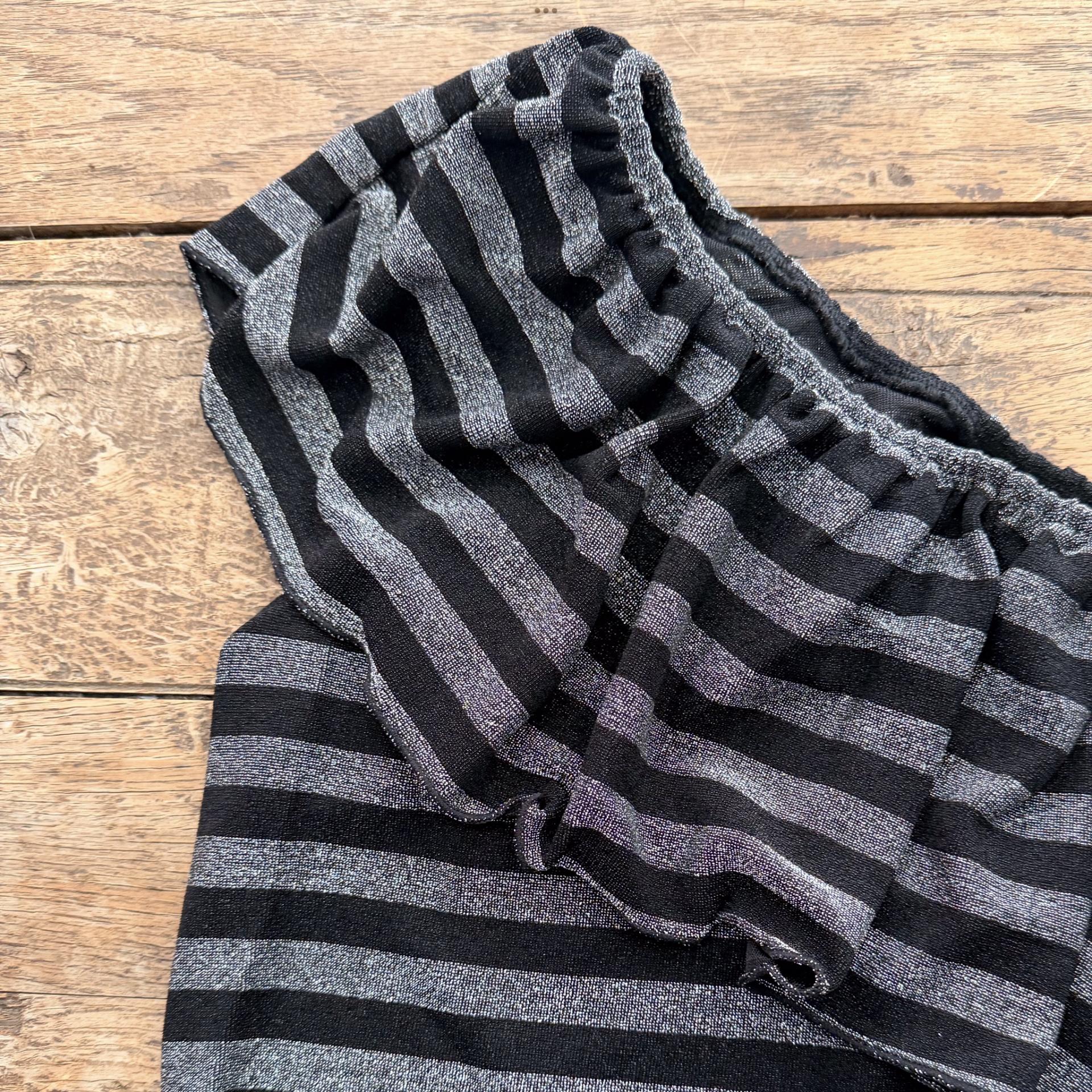 Top lurex rayas negro. Asimétrico, volante