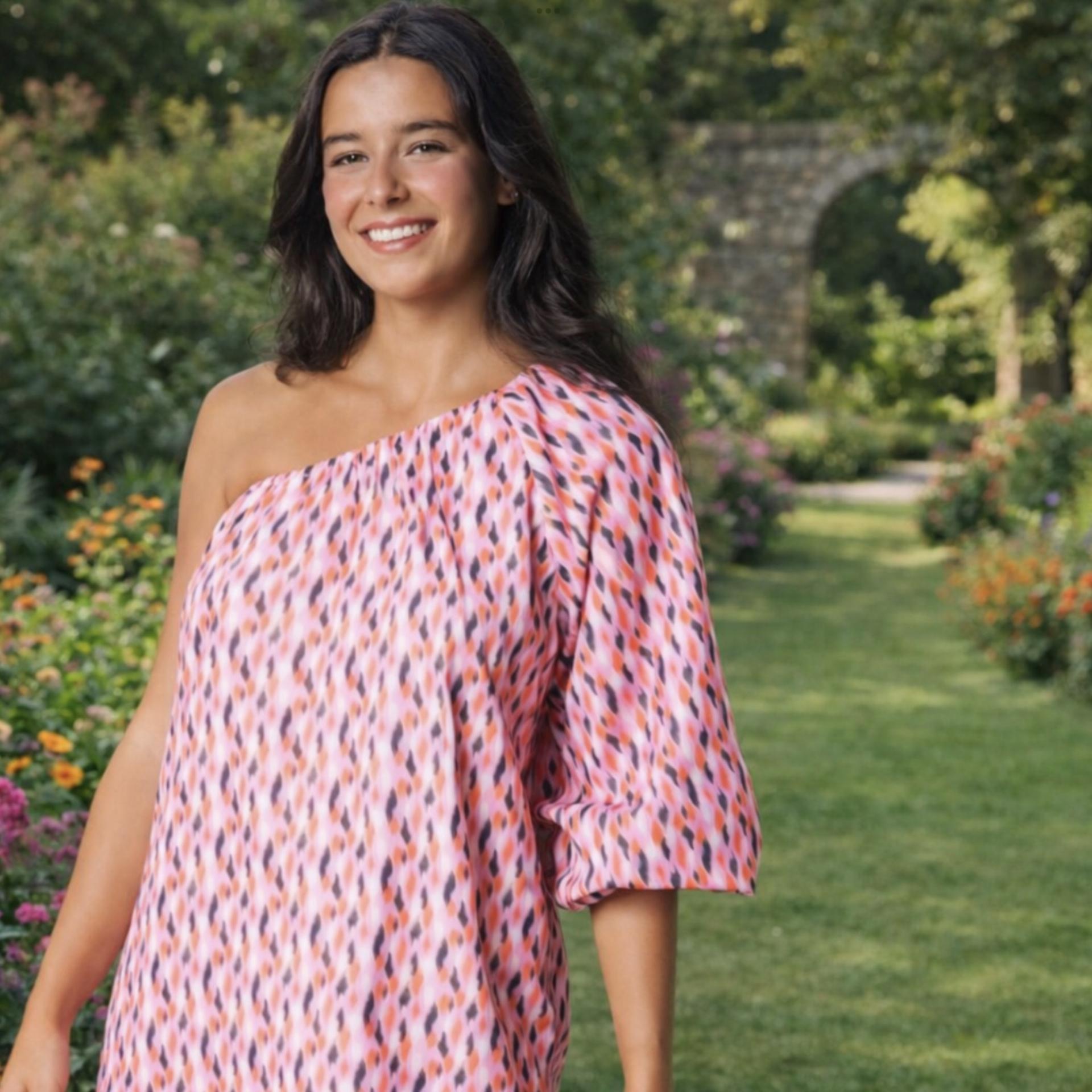 Vestido asimétrico. Colores vivos.