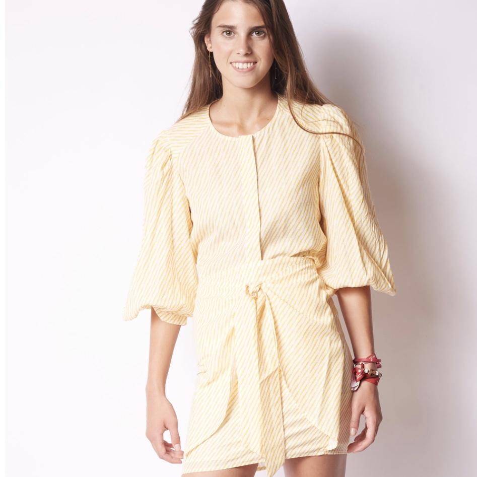 Blusa rayas amarillas. Mangas farol. Cuello caja
